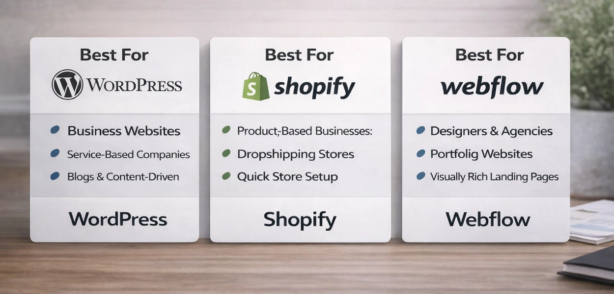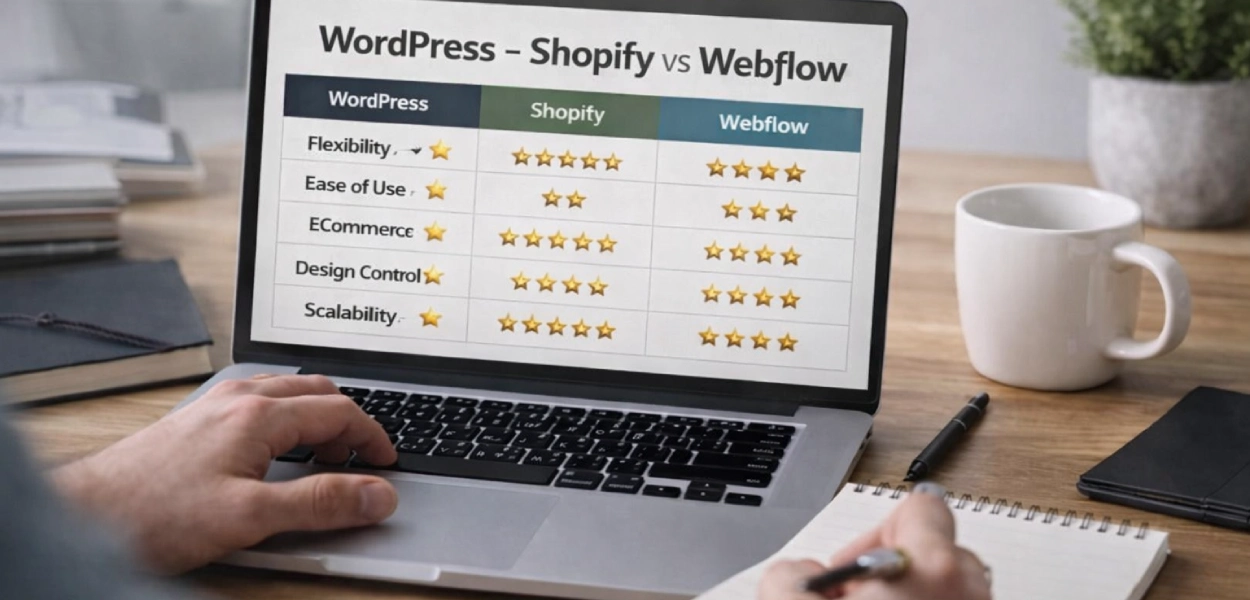 👉 Should you choose WordPress, Shopify, or Webflow?
